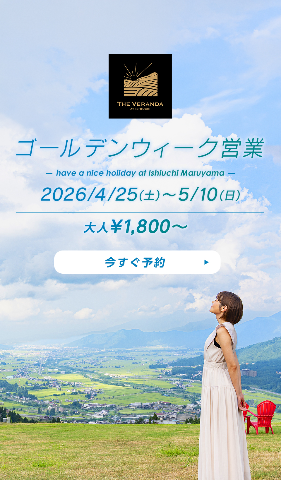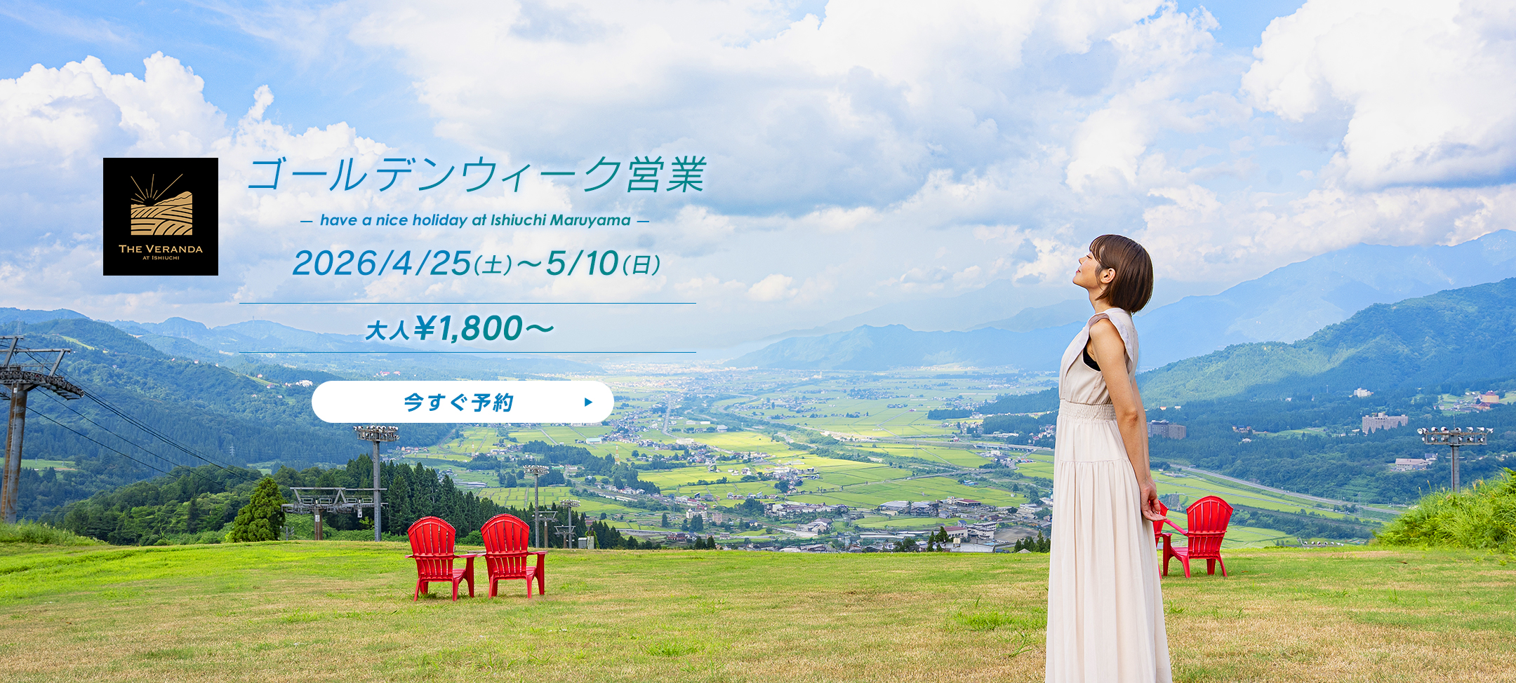 南魚沼平野と越後の山々を望む展望テラス「ザ・ヴェランダ石打丸山」では、ゴールデンウィーク期間の2026年4月25日(土)〜5月10日(日)の期間、春のゴールデンウィーク営業を開催いたします。