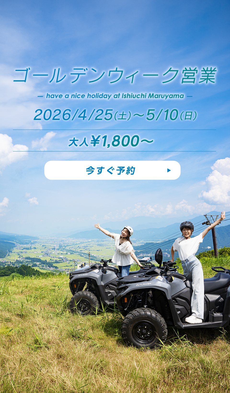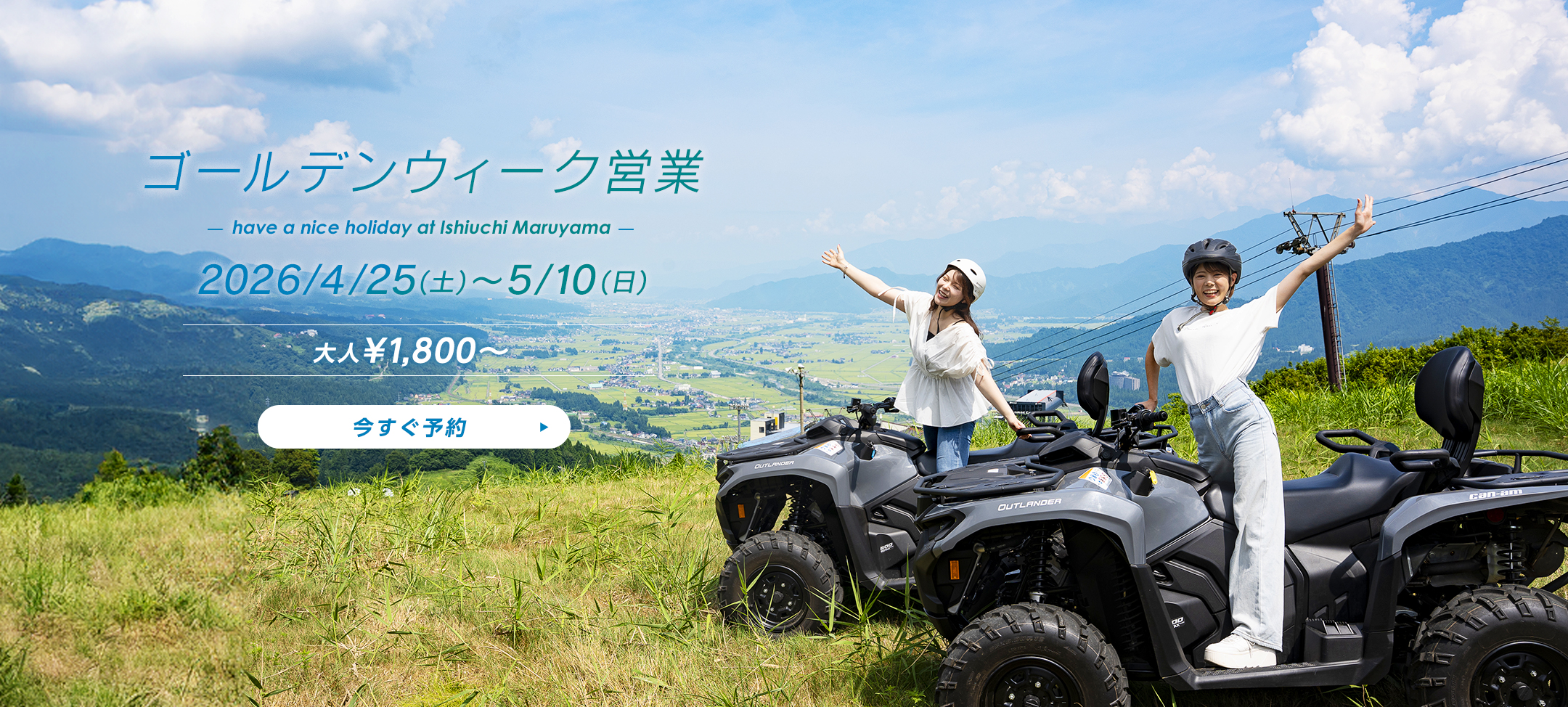 是非、春ならではの爽やかな気候の中、石打丸山の開放的な大自然をお楽しみください。