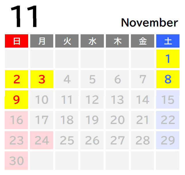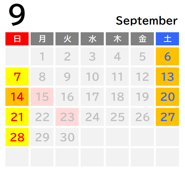 ■昼便運行日…イエロー ★夜便運行日…オレンジ