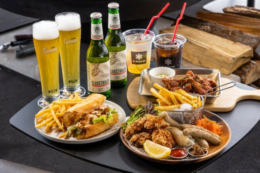 グランドテラスにてビアガーデンを開催いたします。本格ドイツビールの他、お車での来場でも楽しめるノンアル人気銘柄をラインナップし幅広い方に開放的なテラスでのお食事をお楽しみいただけます。