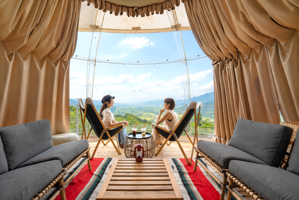 フォトジェニックなプライベート空間「ドームテント」で手軽に非日常体験を。ナイトテラス営業日は夜のプランもご用意。昼も夜も独り占めの絶景をお楽しみいただけます。